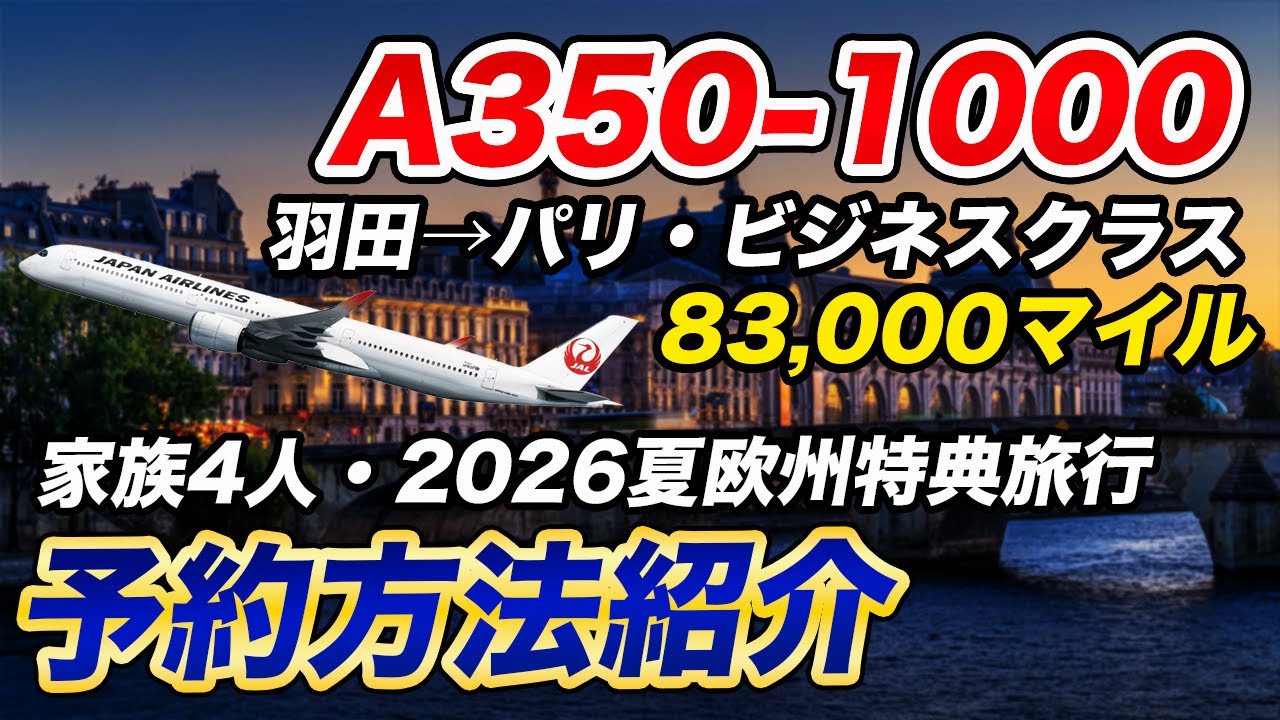 直近でANAマイル、JALマイルを使って特典航空券を発券しました!発券したのは①JAL A350-1000・羽田→パリ・ビジネスクラス、②ANA ストックホルム→羽田・ビジネスクラス、③2026年夏欧州家族旅行(4人分)です! 今でもまだ取れる路線なので、是非参考に、マ... -